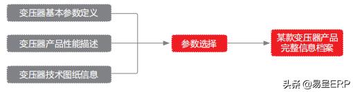 • 项目小组根据公司产品的特点,将变压器产品的基础信息归集为“基本参数、性能参数、产品图纸参数”,每一大项 参数里面,分别包含几十项子件参数内容,具体某款产品,只有在每个参数选定后,产品的基本档案即可确定下来。