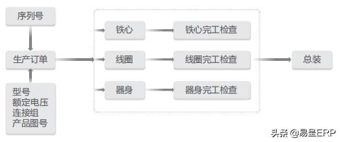 • 生产订单下达时同时包含序列号信息,针对每台设备按照序列号下达工序排产计划到车间操作工。工序完工后进行报 工,才能做半成品入库,自动将报工信息填入序列号中。夹件、铁心、线圈工序完工后进行报工,才能做半成品入 库,自动将报工信息填入序列号中,并打印条码。
