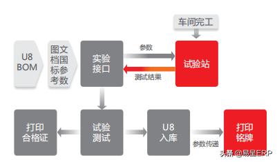 • “易呈erp系统产成品入库”取“接口检测平台”中的检测数据。“接口检测平台”中的数据,输出到“出场报告及合格证生成 系统”,打印产品出厂报告及合格证。