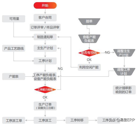 • 易呈ERP生产管理软件根据生产通知单编制主生产计划,根据 BOM 展开各级生产计划。