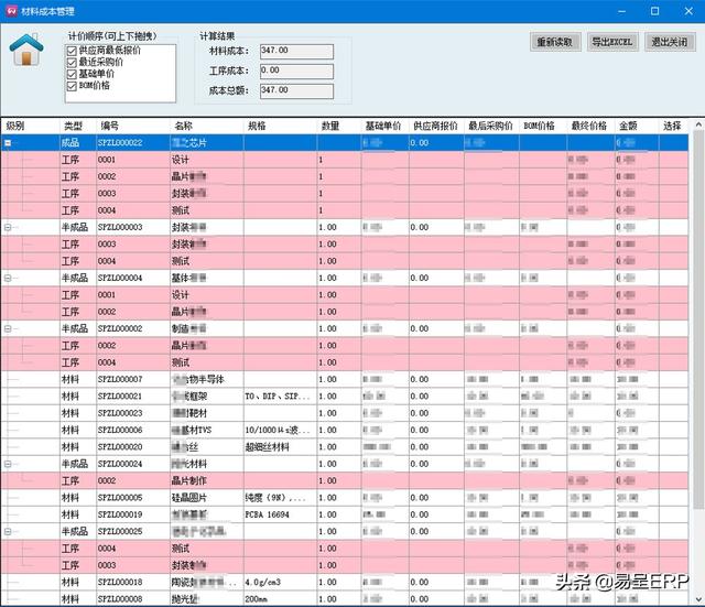 材料运算:通过材料准备情况,根据bom表设定的数量关系,准确运算原材料数量,进而下达采购需求。