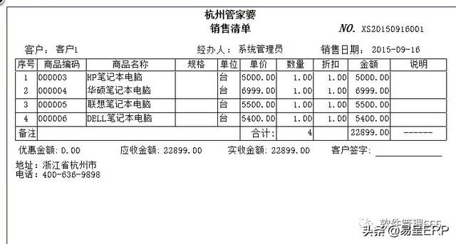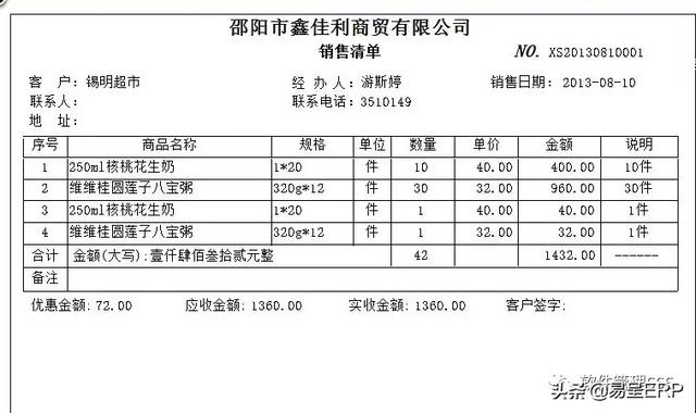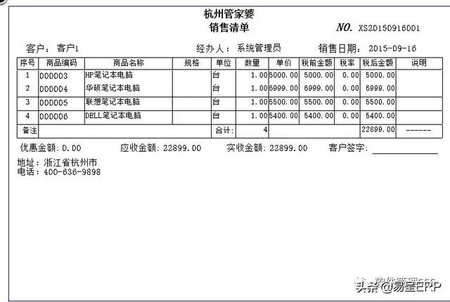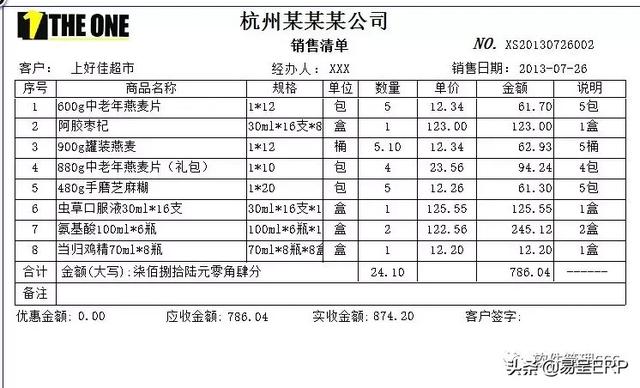 销售单格式: