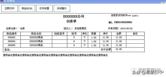 出库单模板: