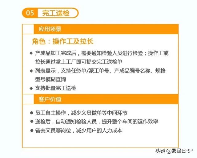 掌上工厂是搭配易呈ERP生产管理系统使用的移动应用,在掌上工厂中可查询生产管理软件的数据及提交正式单据到易呈ERP,帮助用户对车间生产数据进行实时采集。