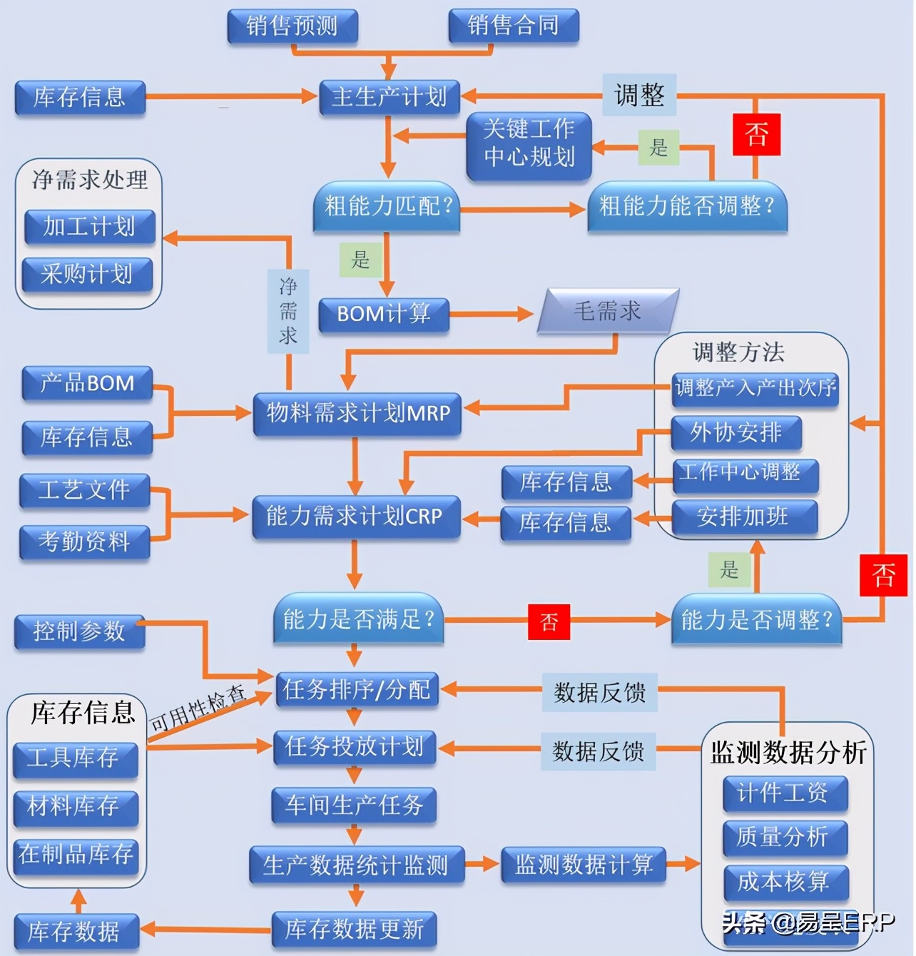 根据市场需求进行主生产计划编制、能力平衡分析、生产通知单、生产作业计划的管理,通过此管理,能保证计划制订合理,是生产顺利进行的主要依据。